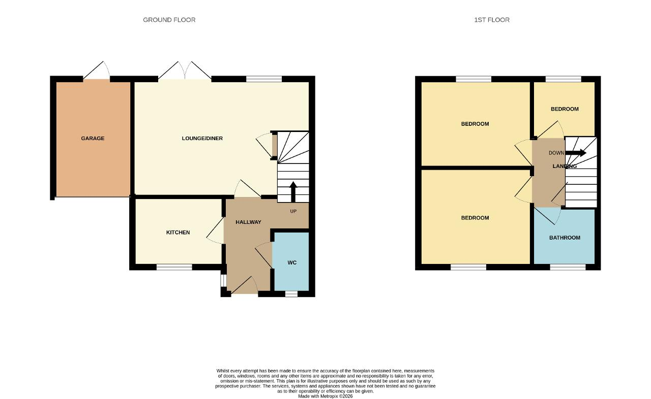 Garage: Up and over door to the front, UPVC door to the rear, concrete base, power and light.