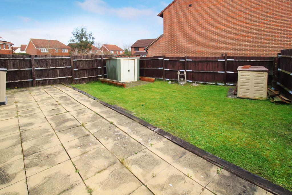 Rear Garden: Secure wooden fence surround, secure wooden gate provides access to the front of the property, patio, laid lawn, two sheds.