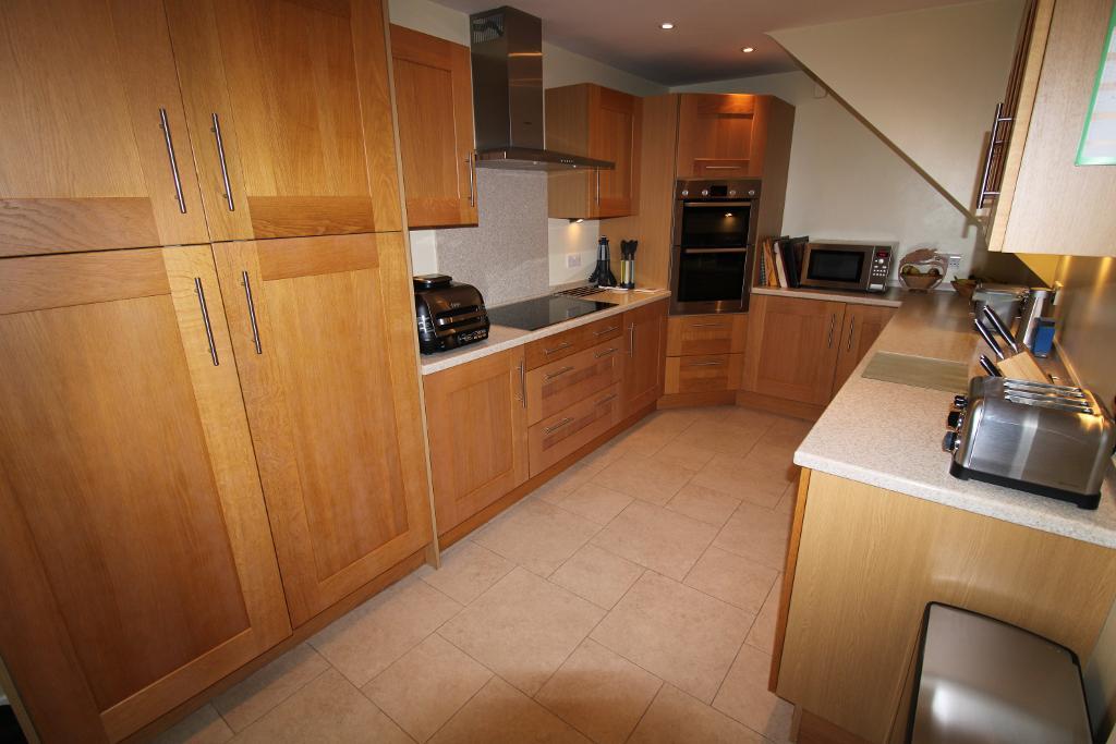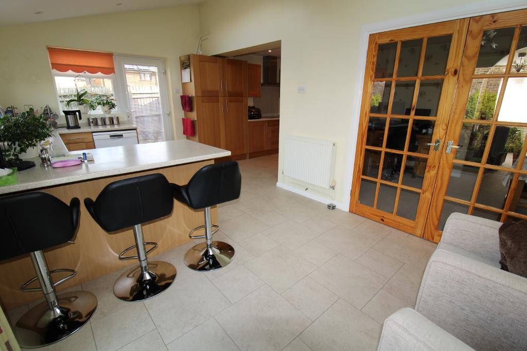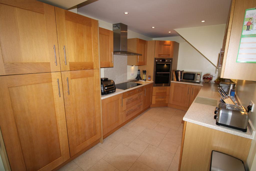 Kitchen/Breakfast Room: 18'7" x 23'9" UPVC windows to rear and side aspect, UPVC doors leading directly out to the garden on rear and side aspect, Mixed eye and base level units with works surface over, built in double oven and five ring induction hob with extractor over, space for washing machine, dishwasher, tumble dryer and under counter fridge and freezer, two skylight's with blinds, tile flooring, radiator.