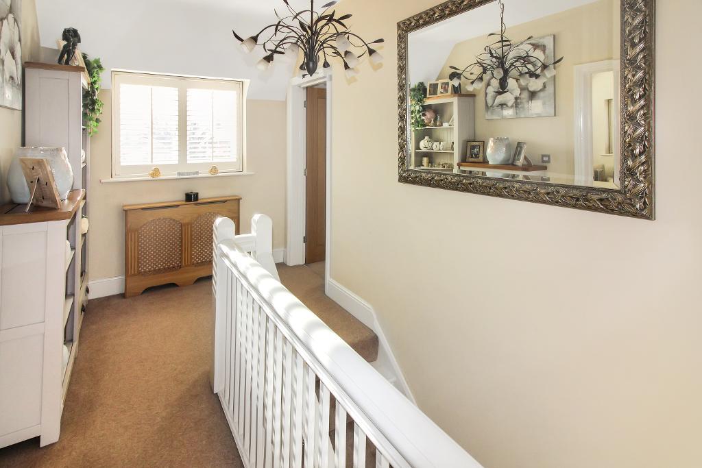 First Floor Landing: UPVC double glazed window with shutters to the side aspect, Doors lead to four bedrooms and family bathroom and airing cupboard, hatch providing access to the loft space, radiator.