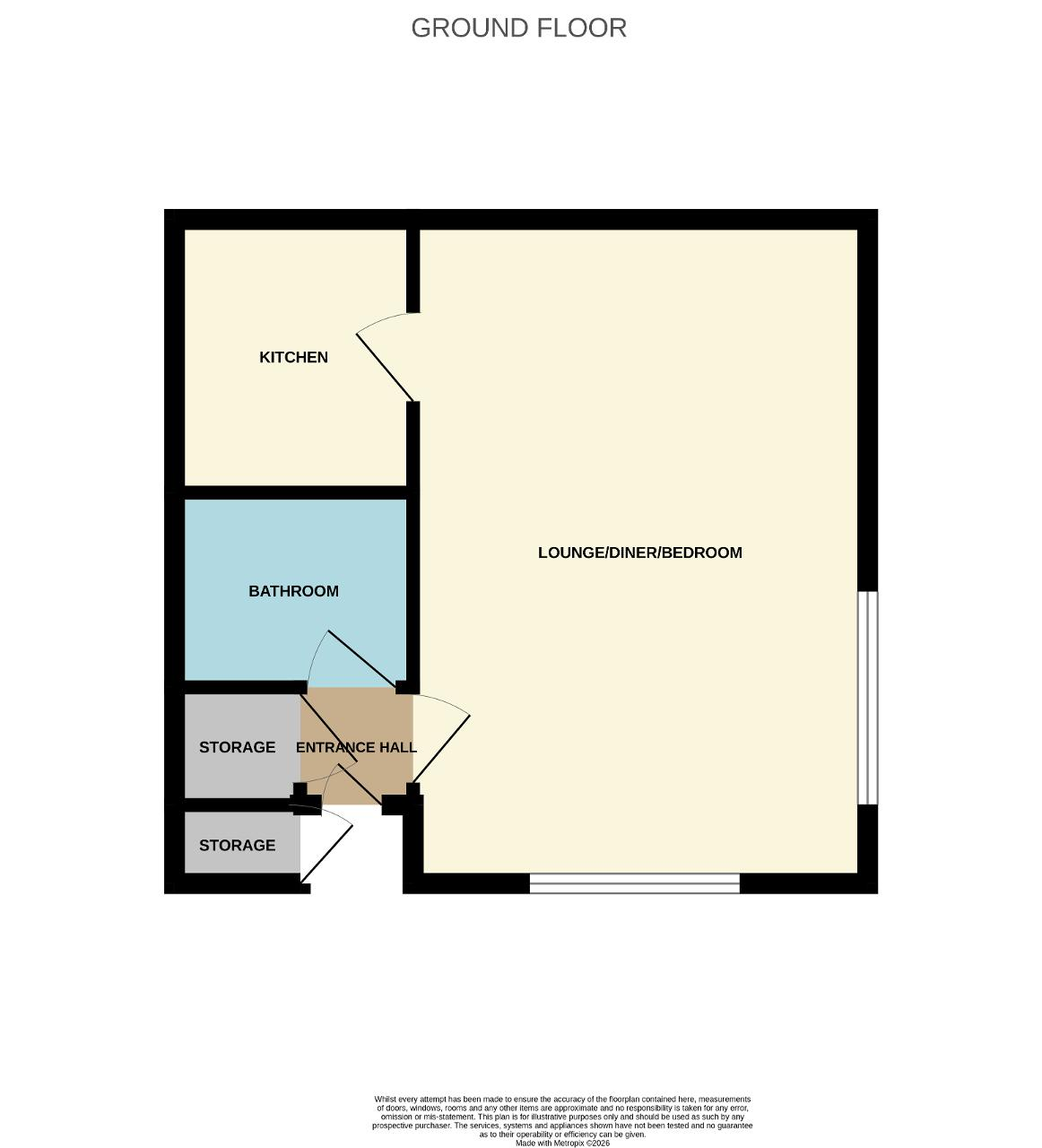 Entrance Hall: Doors lead to lounge, bathroom and storage cupboard which houses the water tank.