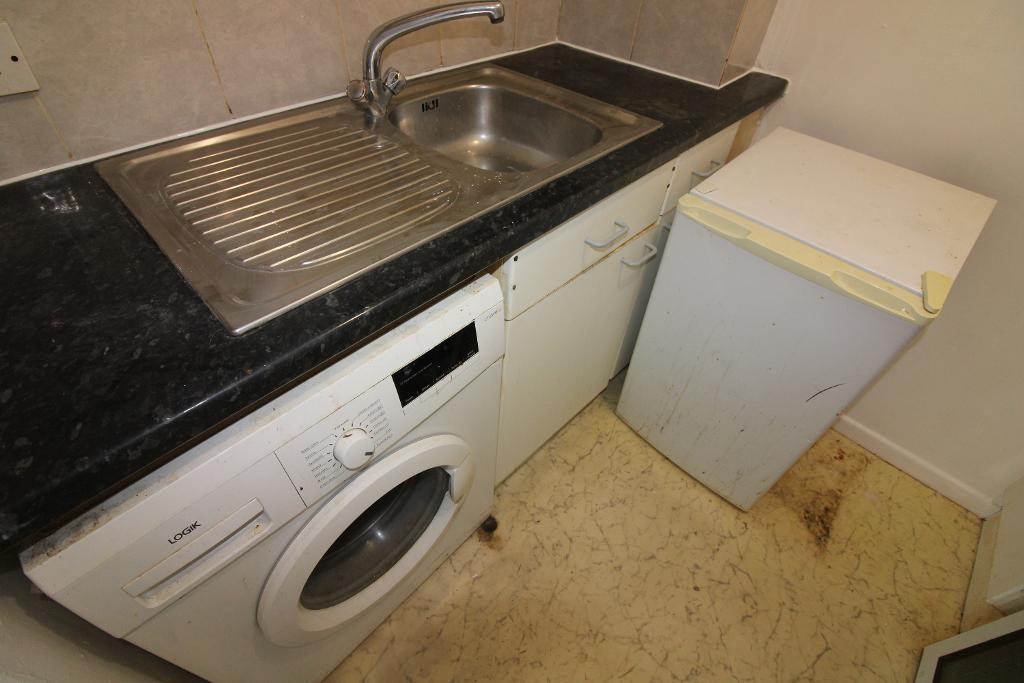 Kitchen: 7'0" x 5'4" Mixed eye and base level units with work surface over and splash tiles, stainless steel sink with drainer board, space for washing machine, space for oven and fridge freezer.