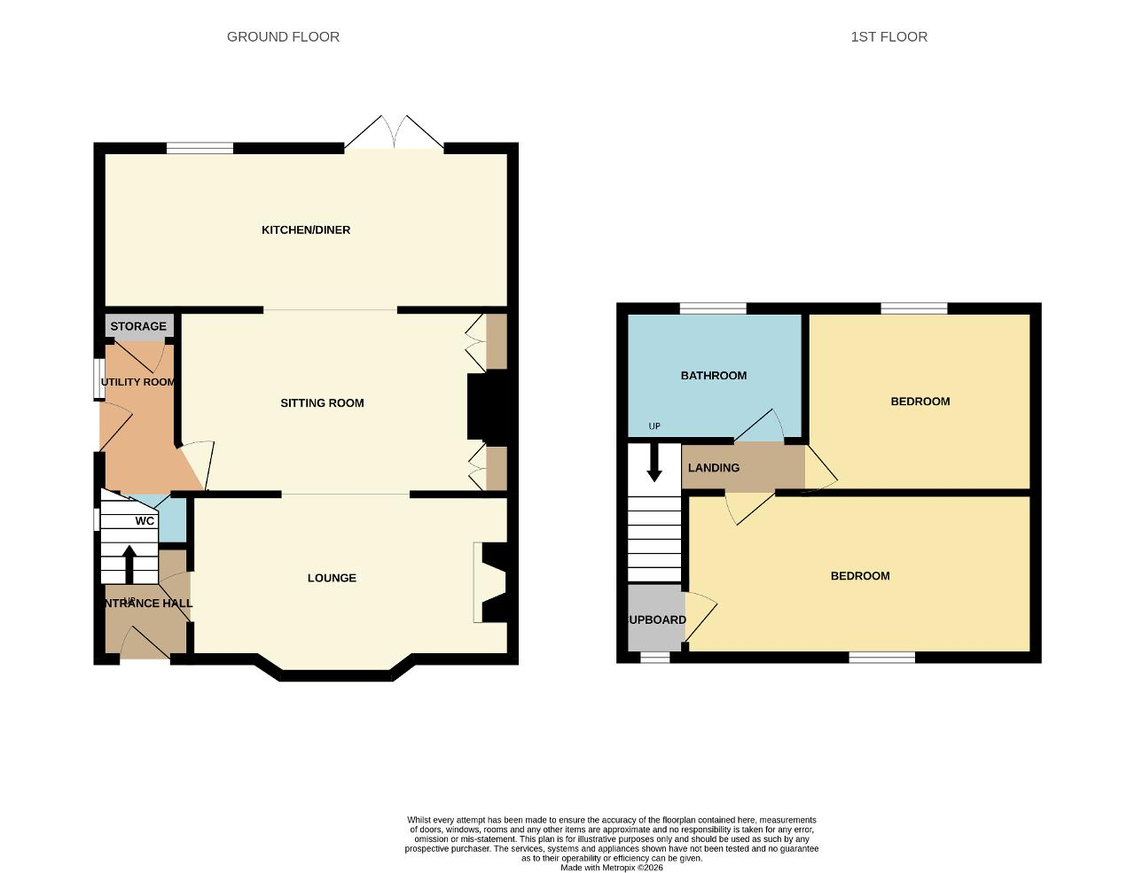 Utility room: 5'9" x 8'4" ; door leading from sitting room to downstairs WC, wooden door to side aspect leading to the garden, storage cupboard, lino flooring, radiator.