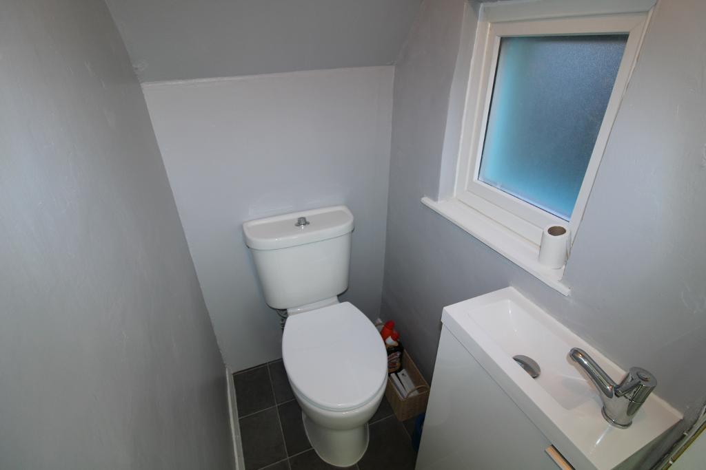 Downstairs WC: 2'9" x 4'7" UPVC double glazed window to the side aspect, low level WC with wall mounted sink.
