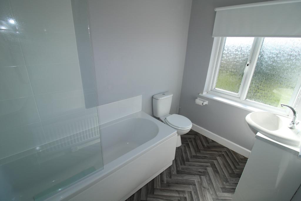 Bathroom: 5'8" x 8'8" UPVC obscure double glazed window to the rear aspect, low level WC, wall mounted sink with panel bath with shower over, lino flooring, radiator.