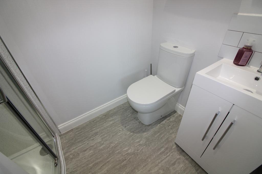 En-Suite: 7'5" x 4'5" UPVC obscure double glazed window to the side aspect, low level WC, sink with built in vanity unit for storage, stand in shower cubicle.