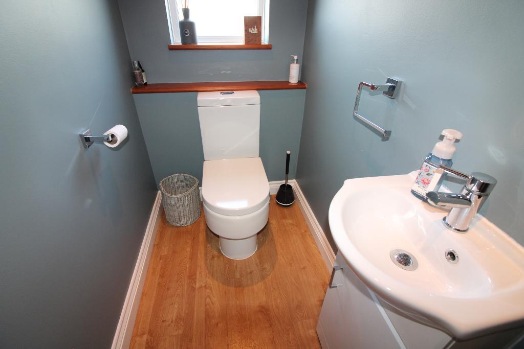 Downstairs Cloakroom: UPVC double glazed obscure window to the front aspect, low level WC, sink with built in vanity unit for storage, radiator.
