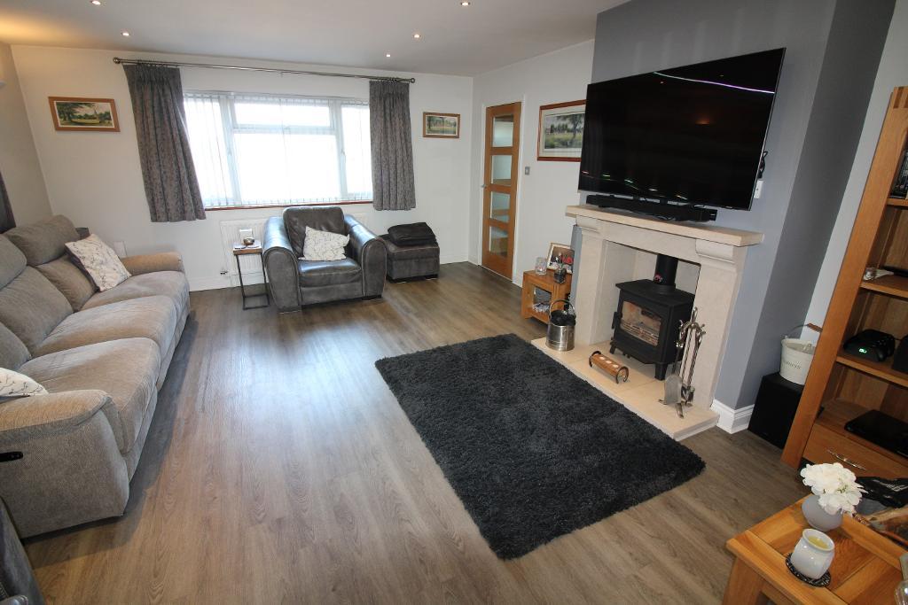 Lounge: 17'0" x 14'7" UPVC double glazed windows to the front and side aspect, feature fire place, radiator, through to the dining room.