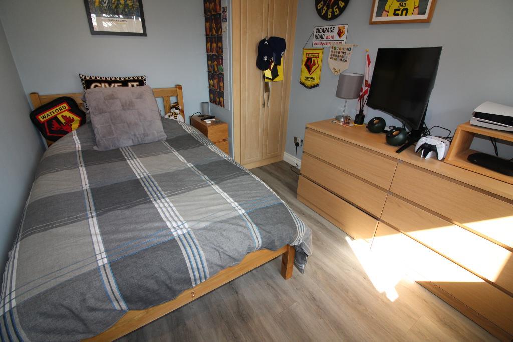 Bedroom Two: 15'6" x 12'6" UPVC double glazed window to rear aspect, loft hatch providing access to the loft which has a ladder and is fully boarded, radiator.