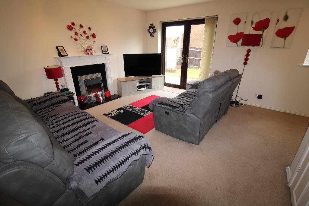 Lounge/Diner: 16'6" x 14'5" UPVC double glazed French doors open directly onto the garden, UPVC double glazed window to the rear aspect , feature electric fireplace, door to under stairs storage cupboard, carpet flooring, radiator.