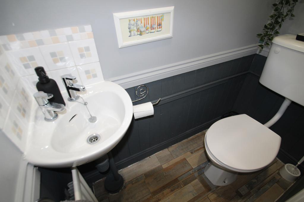 Downstairs Cloakroom: 5'0" x 2'5" UPVC double glazed obscure window to the front aspect, low level WC, wall mounted sink, wood flooring, radiator.