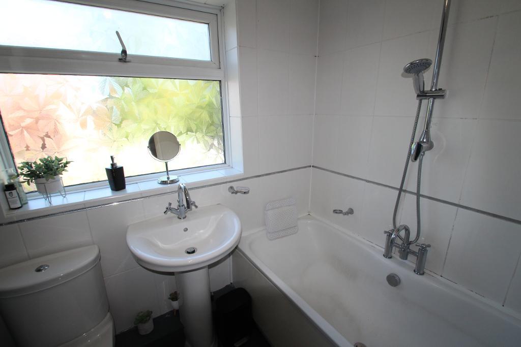 Family Bathroom: 7'2" x 5'4" UPVC double glazed obscure window to the rear aspect, low level WC, sink with pedestal, panel bath with shower over, part tiled walls, wall mounted chrome heated towel rail.