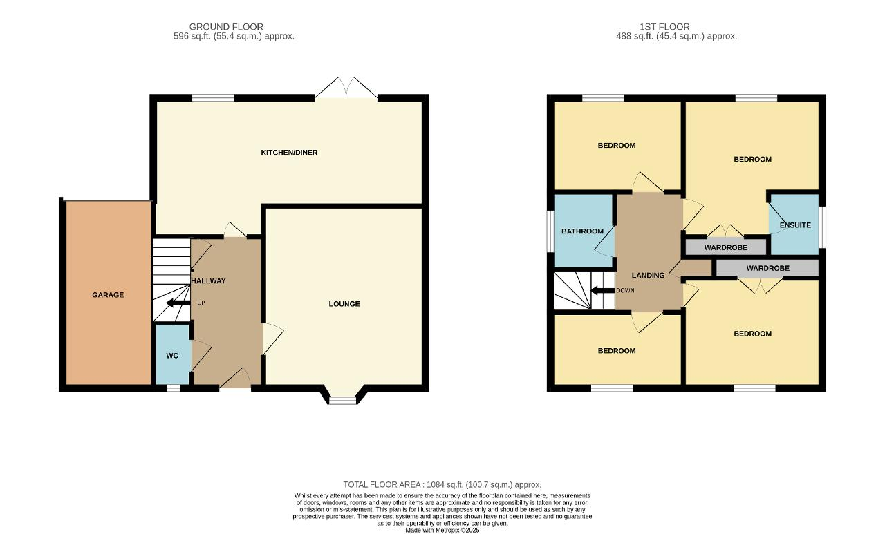 First Floor Landing: Doors leading to four bedrooms, family bathroom and airing cupboard housing the water tank, loft hatch providing access to the loft which is part boarded, carpet flooring and a radiator.