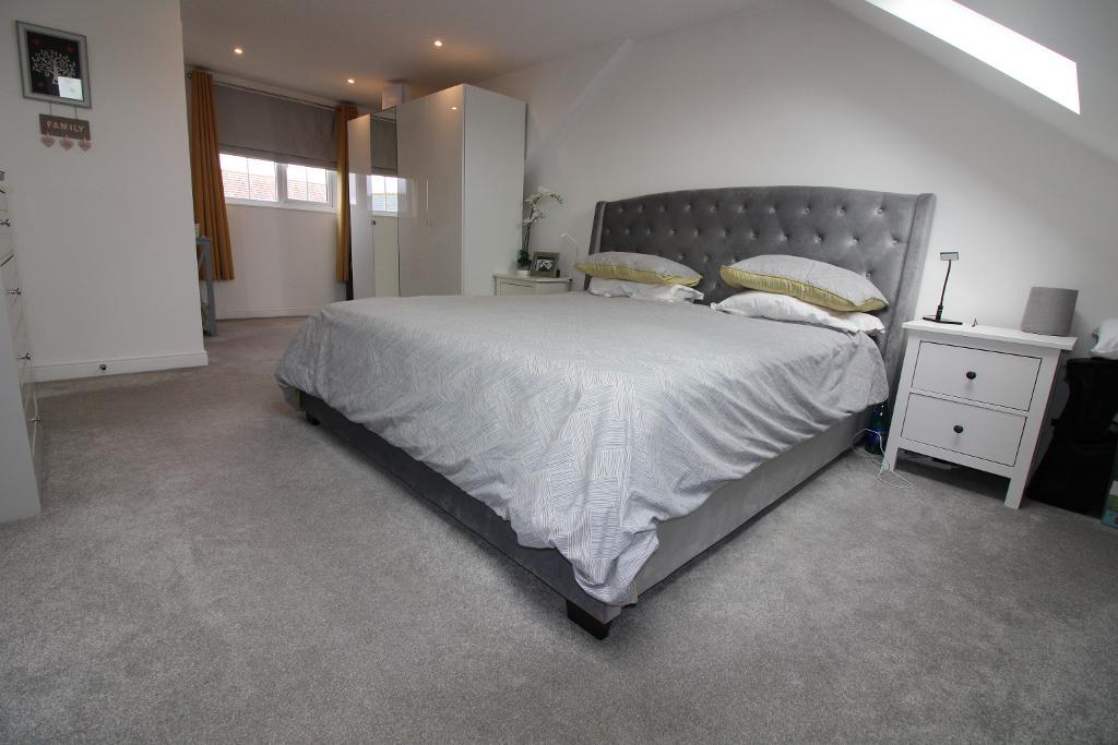 Master Bedroom: 22'1" x 11'7" A lovely spacious main bedroom with two Velux windows, UPVC double glazed window to rear aspect, two storage cupboards, radiator, door to en-suite.