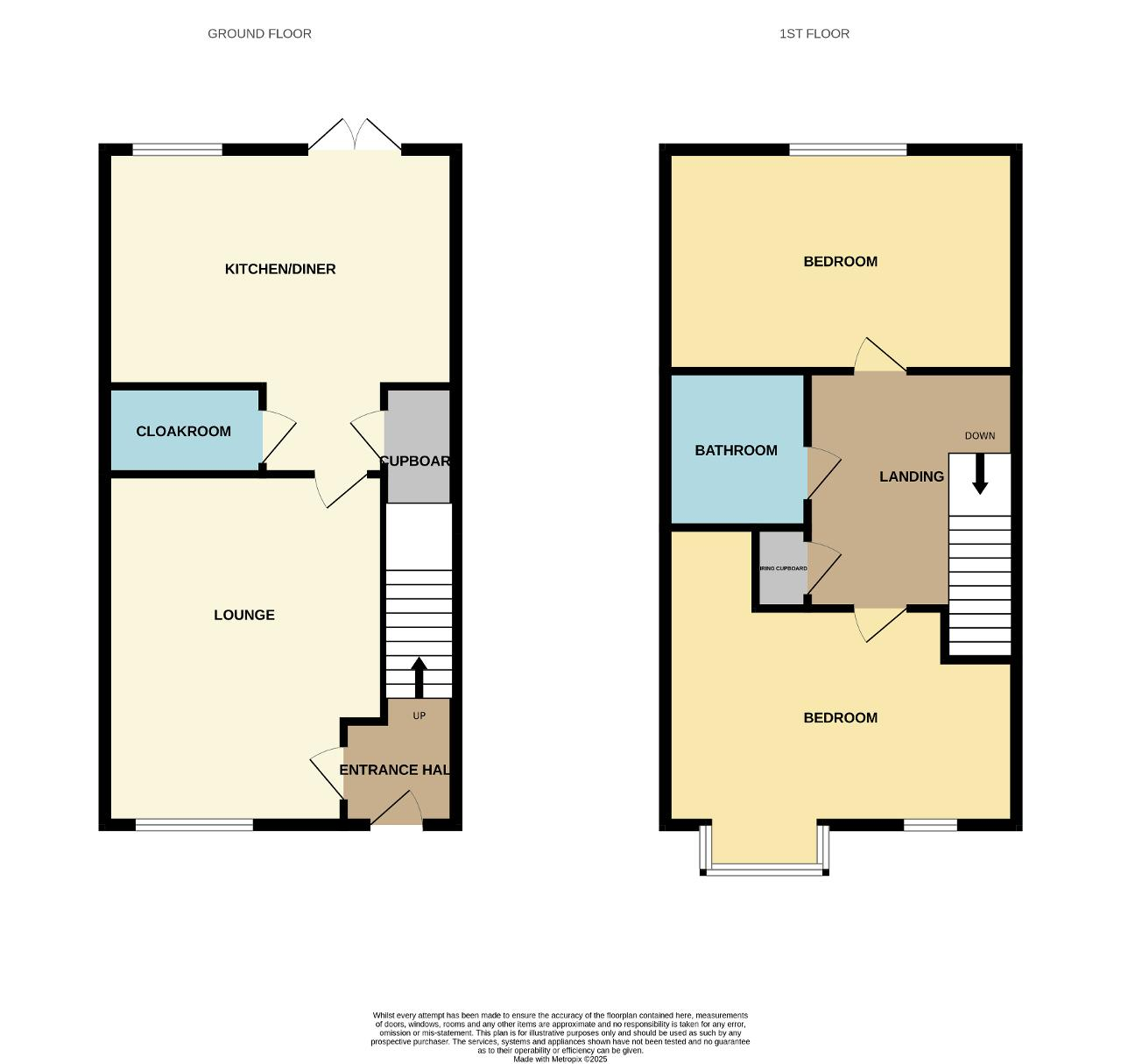 First Floor Landing: Doors lead to two bedrooms, bathroom, airing cupboard, loft hatch providing access to the loft space.