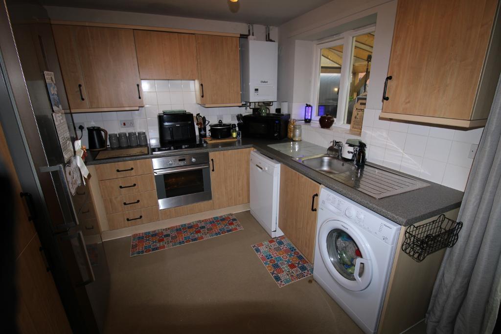 Kitchen/Diner: 14'5" x 9'7" UPVC double glazed window to the rear aspect, UPVC double glazed door leads directly out to the rear garden, mixed eye and base level units with work surface over and splash tiles, space for washing machine, dishwasher and tall standing fridge freezer, built in oven and gas hob with extractor fan over, radiator. Door to under stairs storage cupboard, door to downstairs cloakroom.