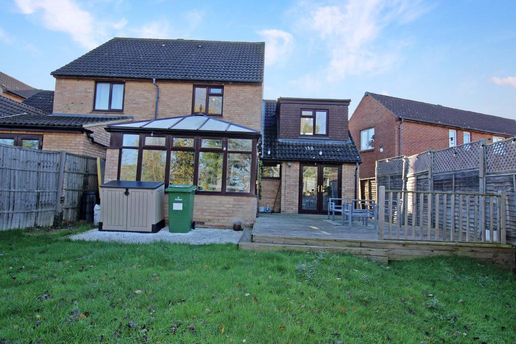 Rear Garden: Fully enclosed with wooden fence, wooden gate provides access to the front of the property, large decking area, large lawn, shed to remain.