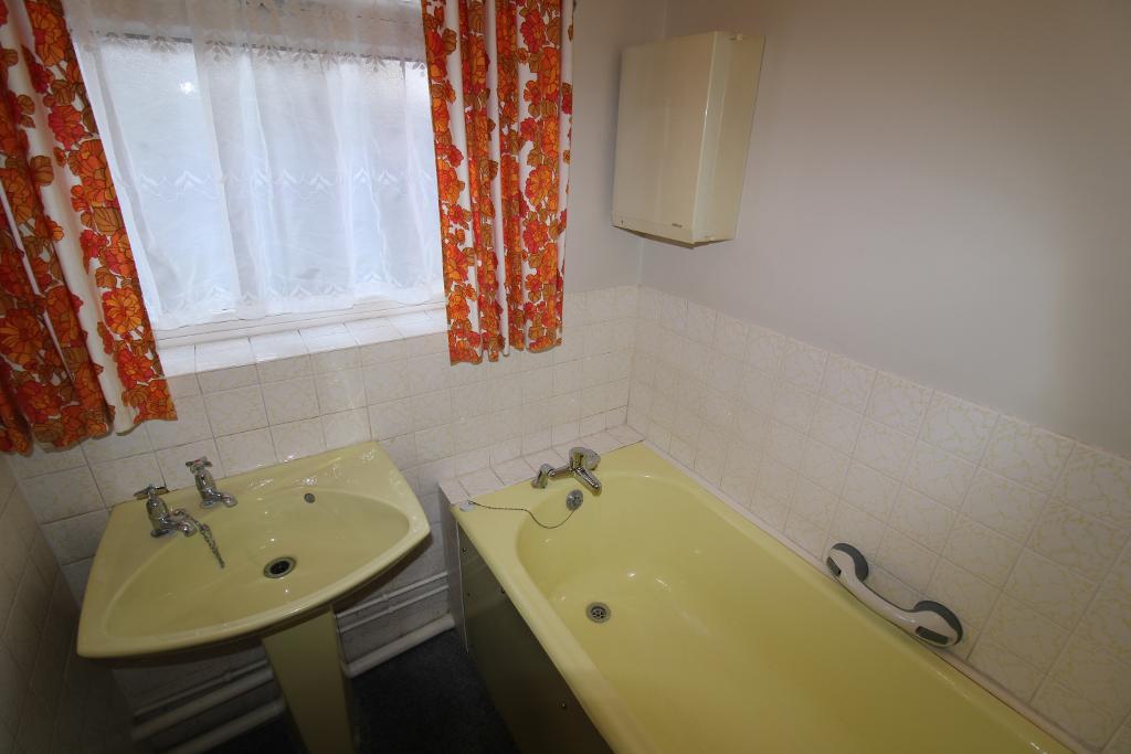 Bathroom: 5'0" x 5'8" UPVC double glazed obscure window to the side aspect, pedestal sink, panel bath, part tiled walls.