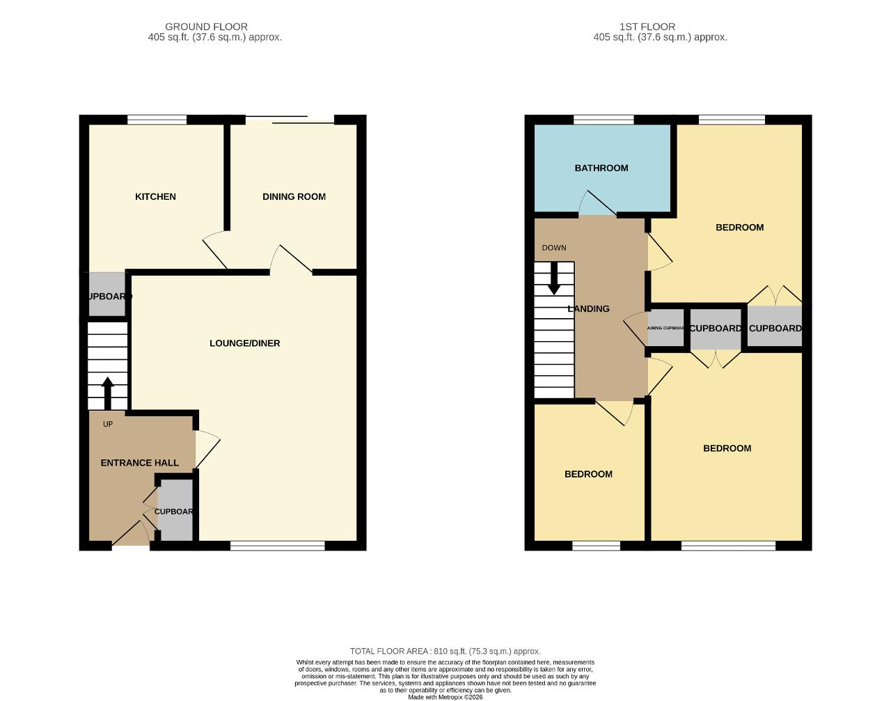 First Floor Landing: Doors lead to three bedrooms, bathroom and airing cupboard, hatch providing access to the loft space.