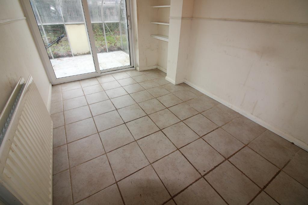 Dining Room: 12'7" x 7'7" Door leads to the kitchen, patio doors lead out to the rear garden, tiled floor, radiator.