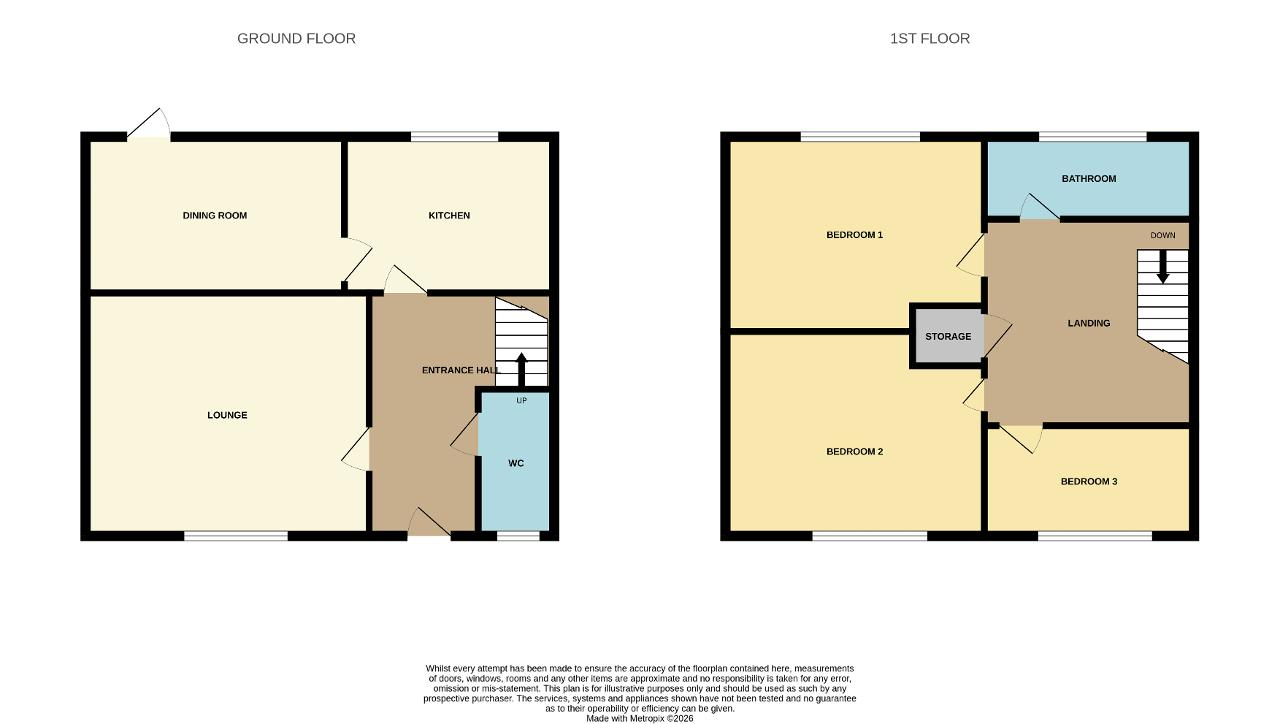 Cloakroom: 6'3" x 2'8" UPVC double glazed obscure window to the front aspect, low level WC, sink with pedestal and splash tiles, tiled floor, radiator.