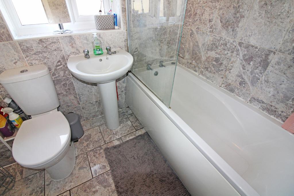 Bathroom: 6'9" x 5'7" UPVC double glazed obscure window to the rear aspect, low level WC, sink with pedestal, panel bath with shower over, fully tiled walls and floor, radiator.