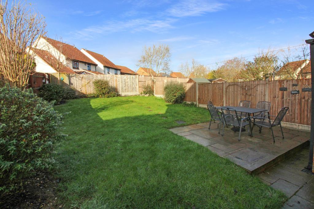 Rear Garden: Laid lawn, large slabbed patio area with a slabbed pathway that leads to the rear of the garden, wood fence surround, door that leads into the garage, outside tap.
