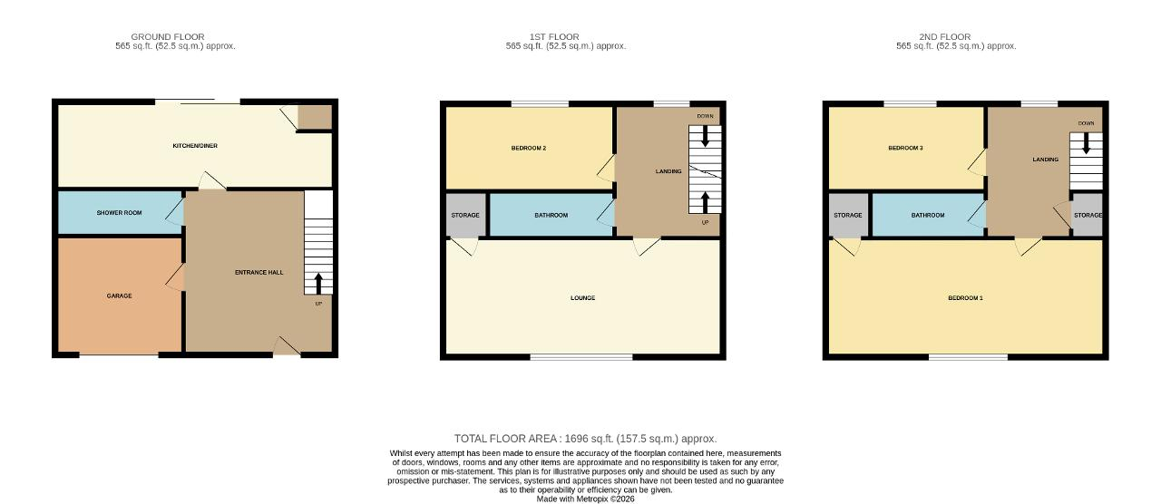 Entrance Hall: Doors lead to the garage, kitchen / diner and downstairs cloakroom and shower room, tiled floor.
